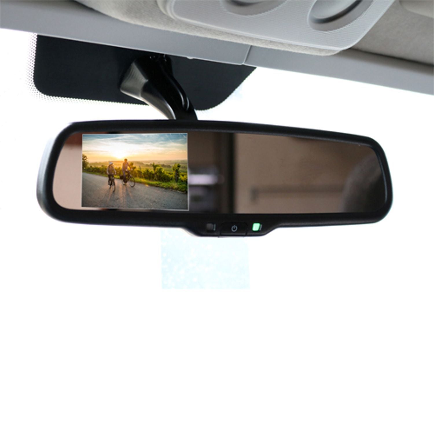 Der Monitor schaltet automatisch beim Einlegen des Rückwärtsgangs ein, während der Fahrt ist er bequem über den Schalter unterhalb der Spiegelfläche einschaltbar. Die Helligkeit regelt sich automatisch und ist zusätzlich einstellbar.