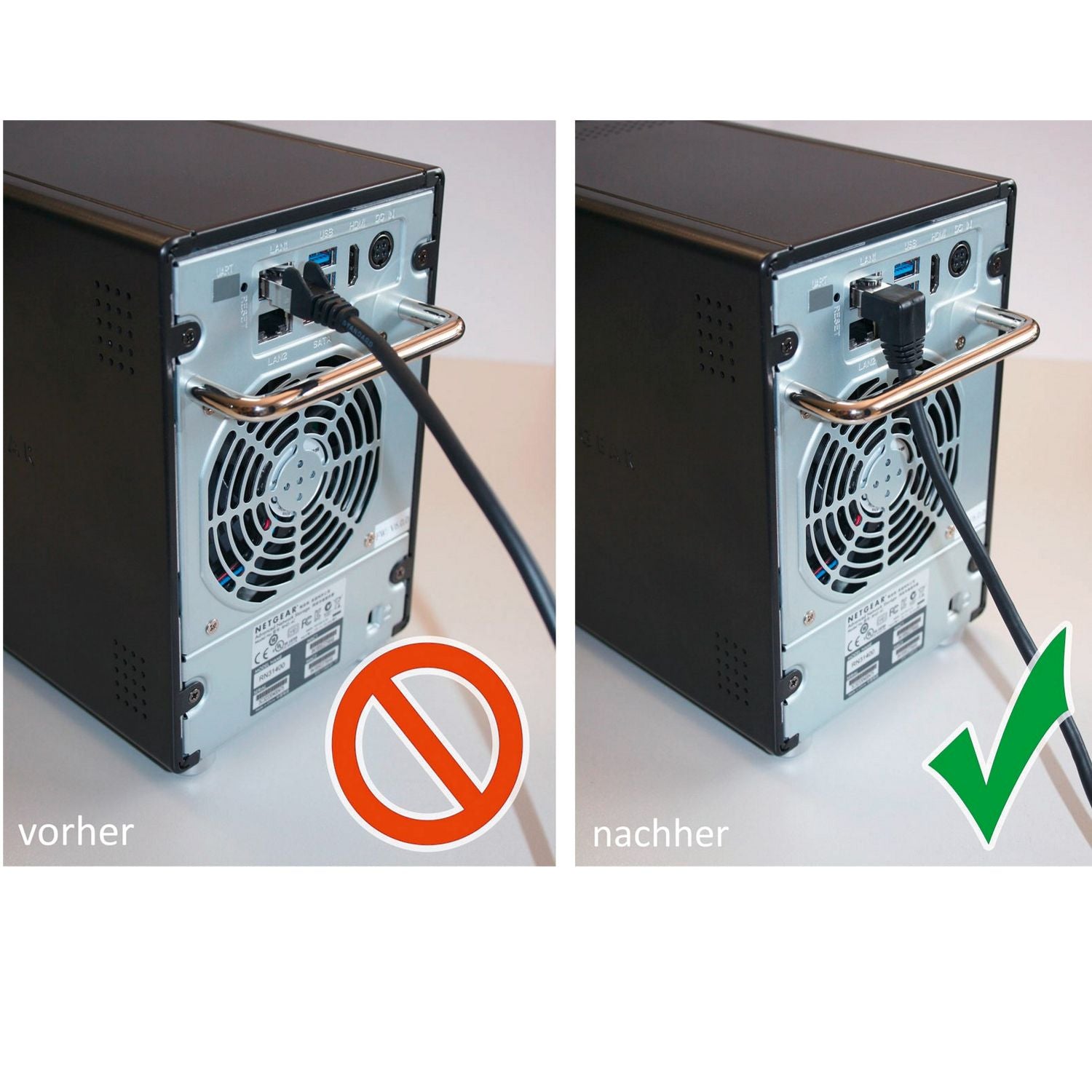 CAT 5e Netzwerkkabel, 90° gewinkelt, F/UTP1x 90° RJ45 Stecker (Rastnase oben)/ 1x gerade