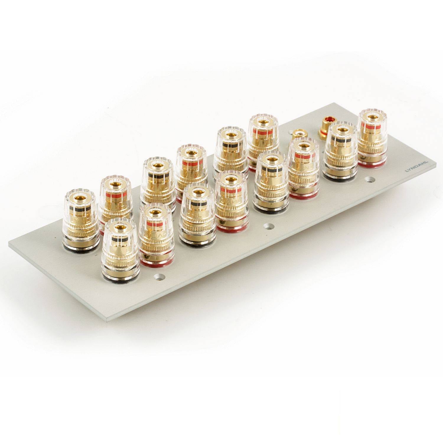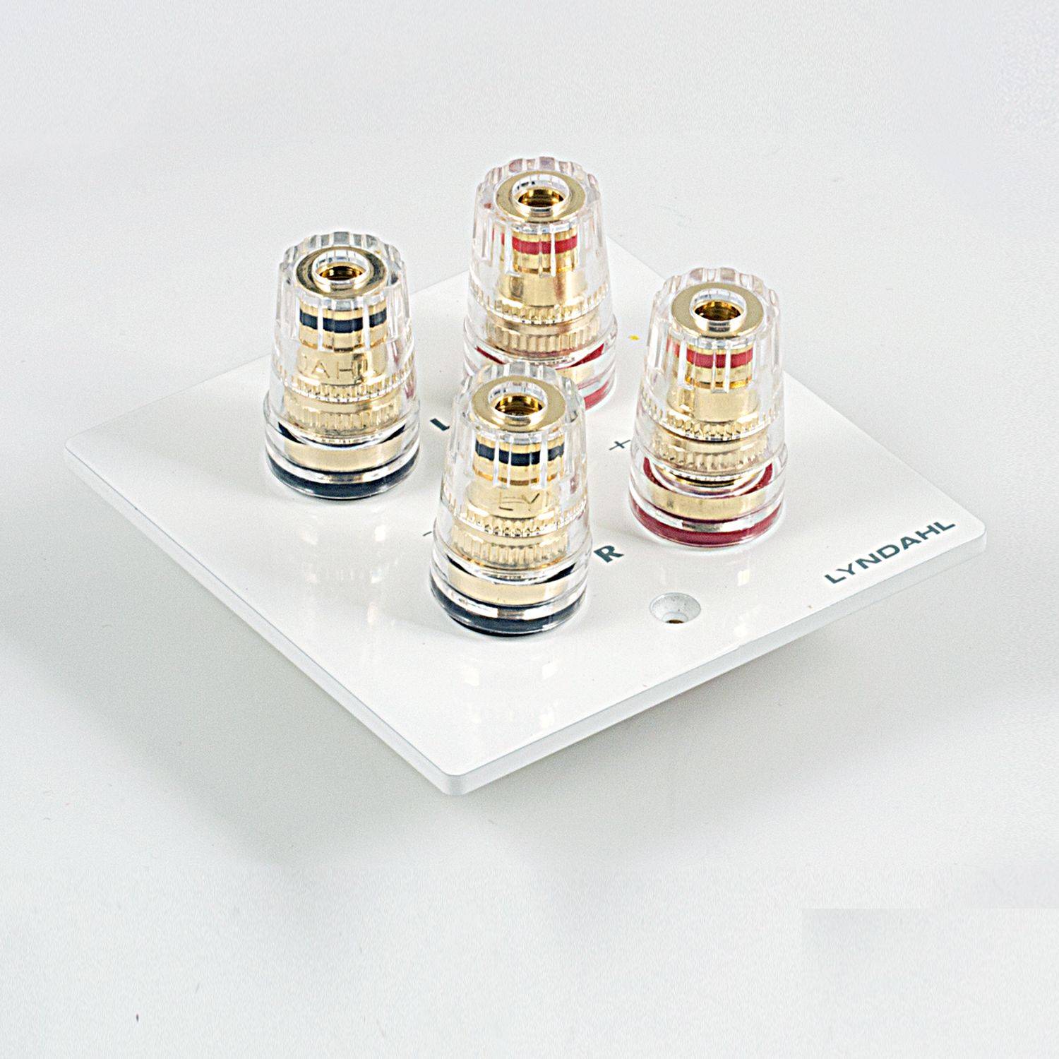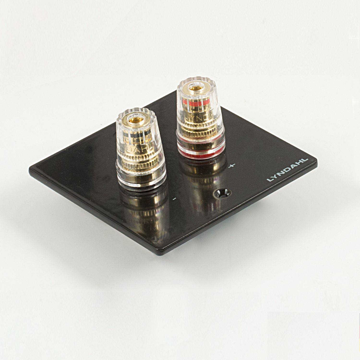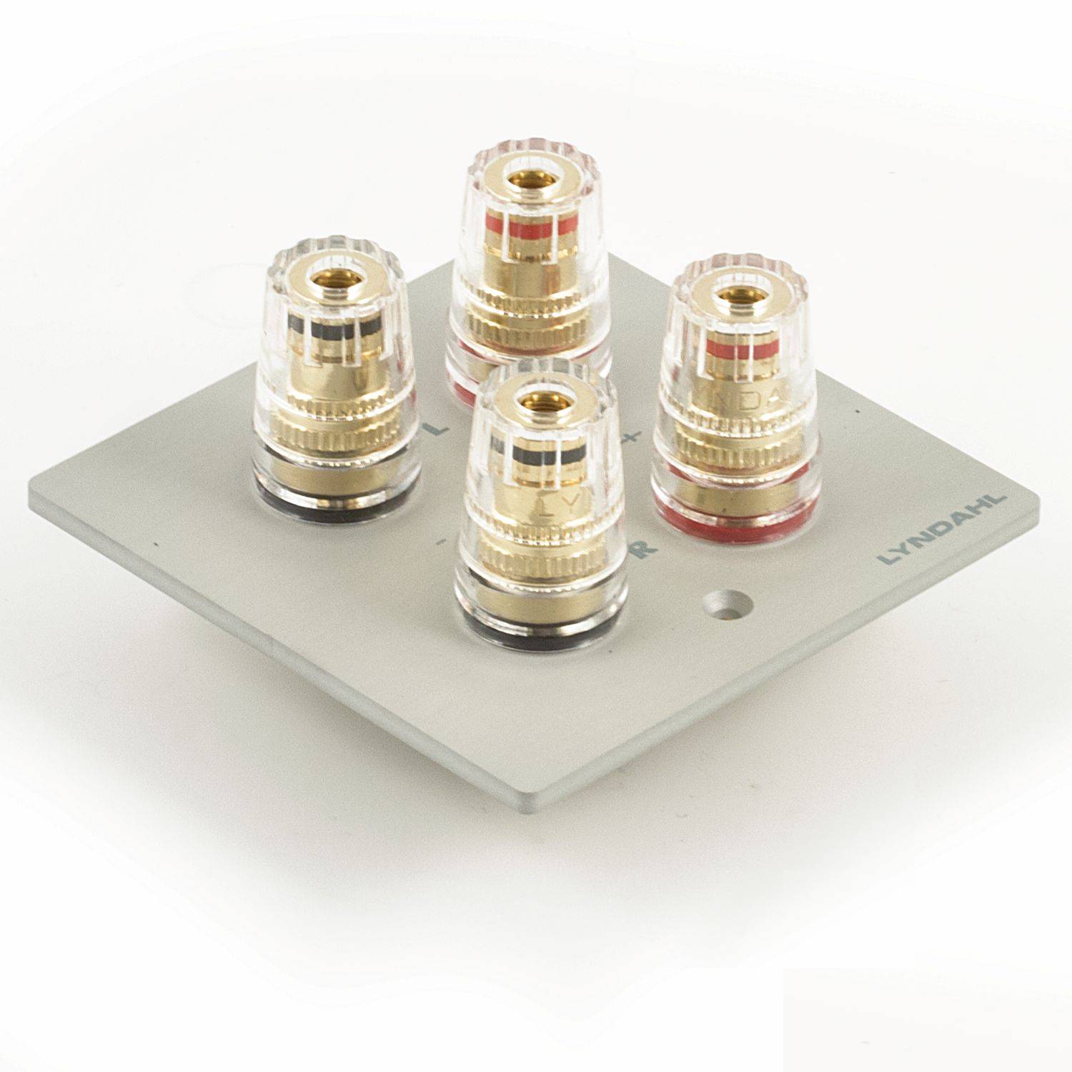 Mehrfach isolierte und hartvergoldete Anschlußterminals sorgen bei den 1-fach, 2-fach, 5.1 und 7.1 Blenden für optimale Kontaktsicherheit und minimalen Signalverlust. Die Polklemmen sind ausgelegt zur Aufnahme von Bananenstecker, Kabelschuh, Ringöse, Kabel mit Adernendhülse oder zum direktem Anschluss des blanken Kabels. Die Terminals können einen Kabeldurchschnitt von 4mm² aufnehmen.