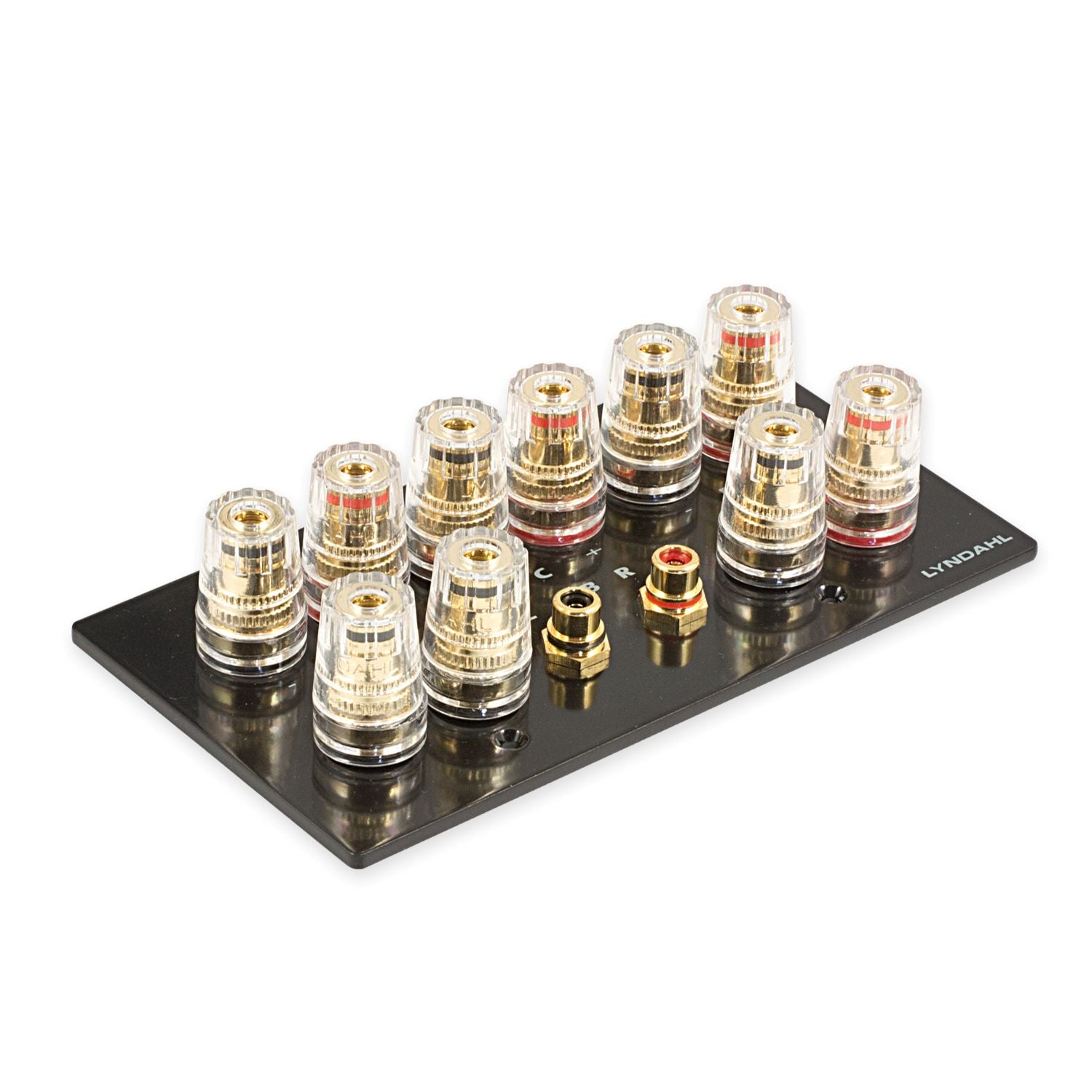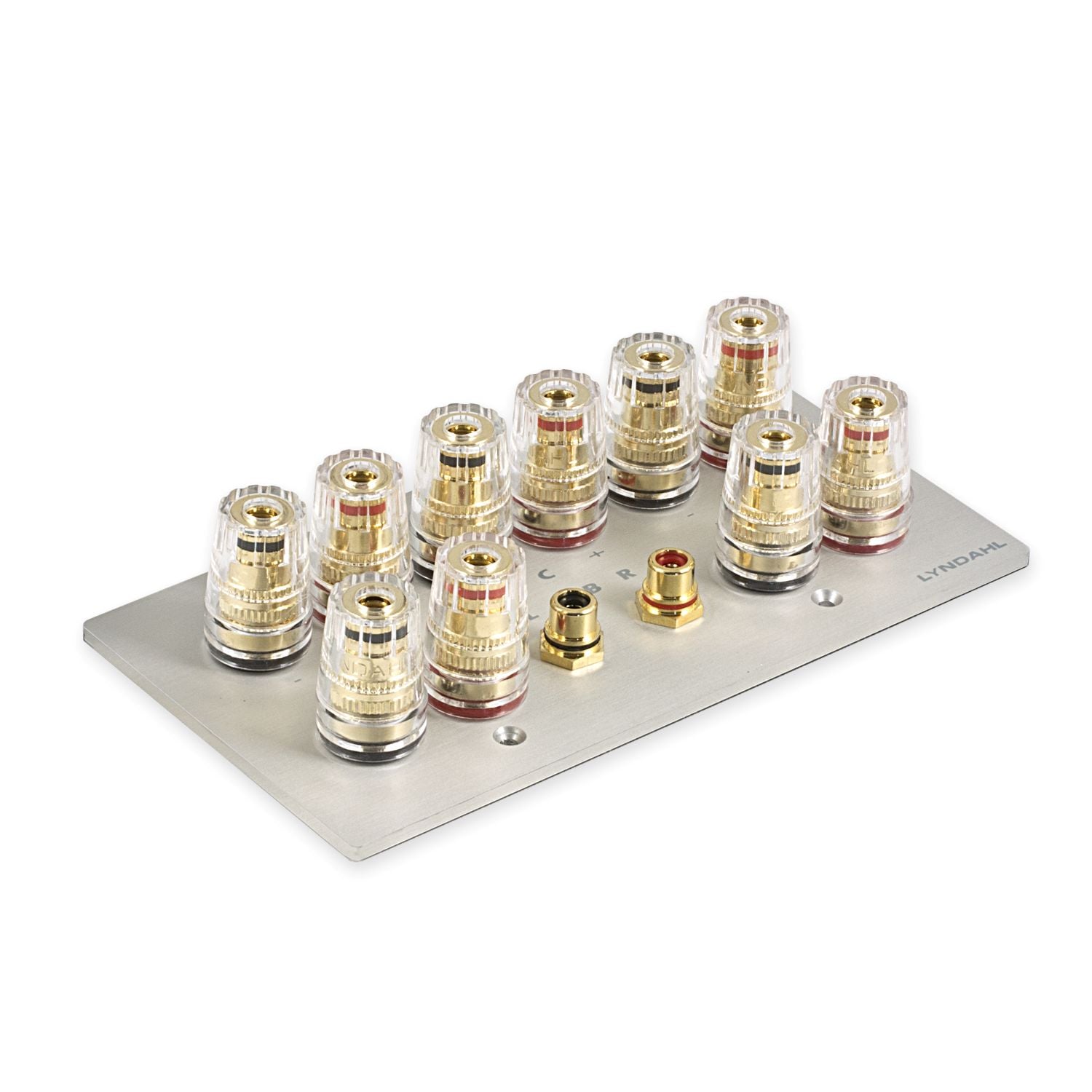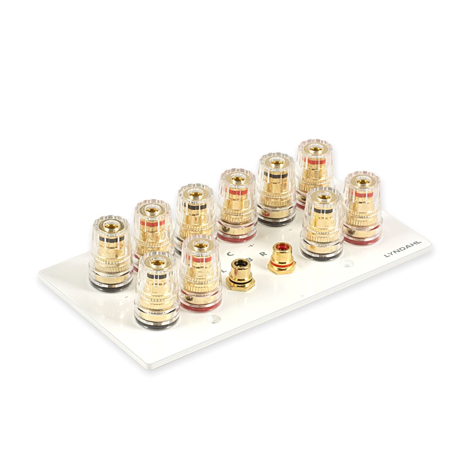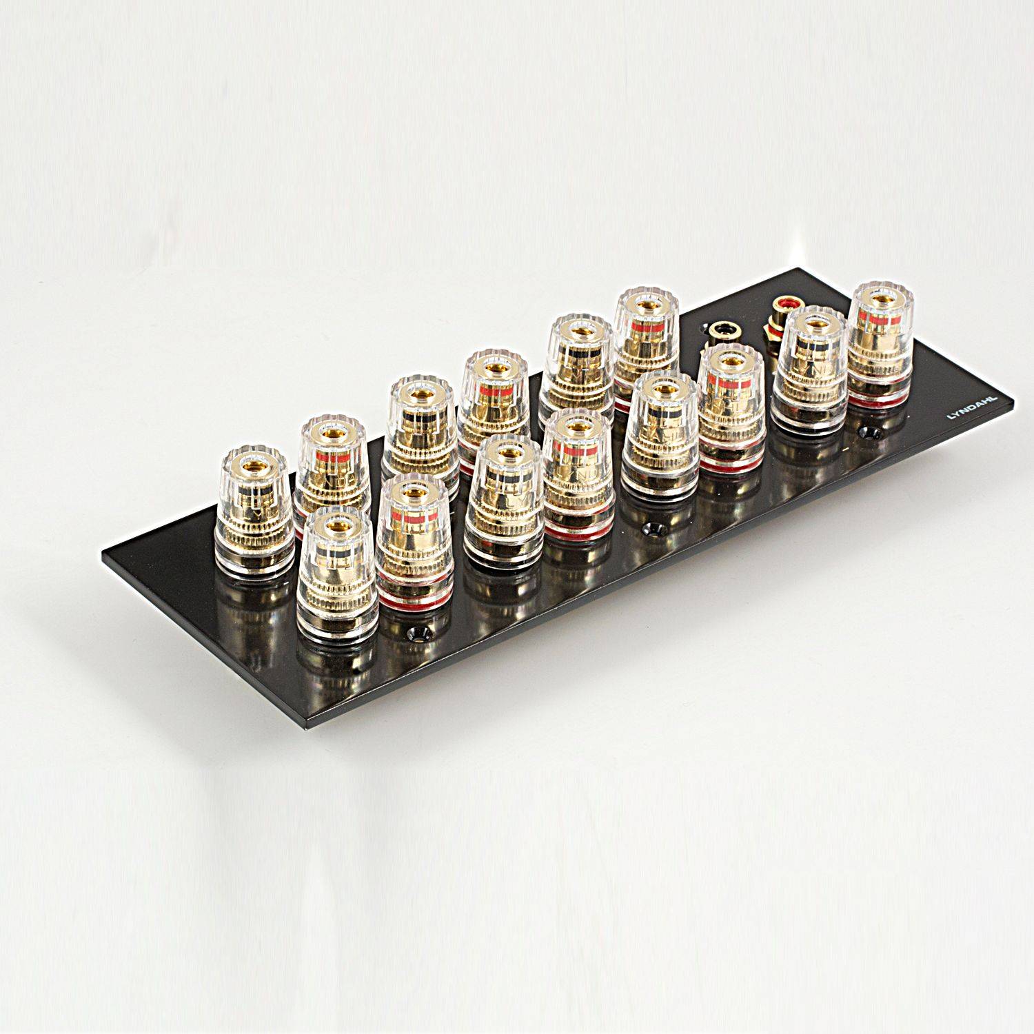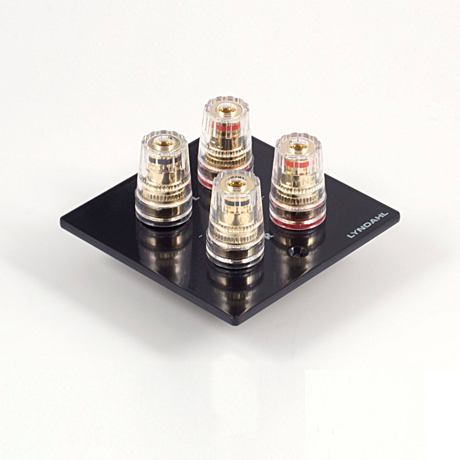 Mehrfach isolierte und hartvergoldete Anschlußterminals sorgen bei den 1-fach, 2-fach, 5.1 und 7.1 Blenden für optimale Kontaktsicherheit und minimalen Signalverlust. Die Polklemmen sind ausgelegt zur Aufnahme von Bananenstecker, Kabelschuh, Ringöse, Kabel mit Adernendhülse oder zum direktem Anschluss des blanken Kabels. Die Terminals können einen Kabeldurchschnitt von 4mm² aufnehmen.